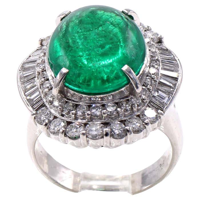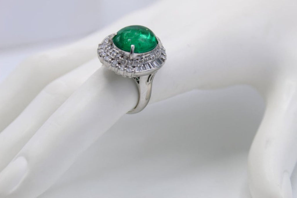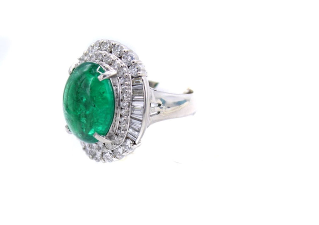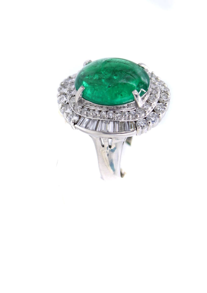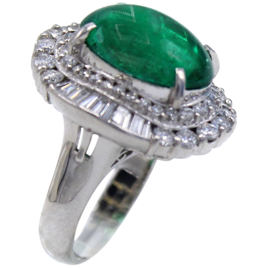 Colombian Cabochon Emerald Diamond Platinum Ring