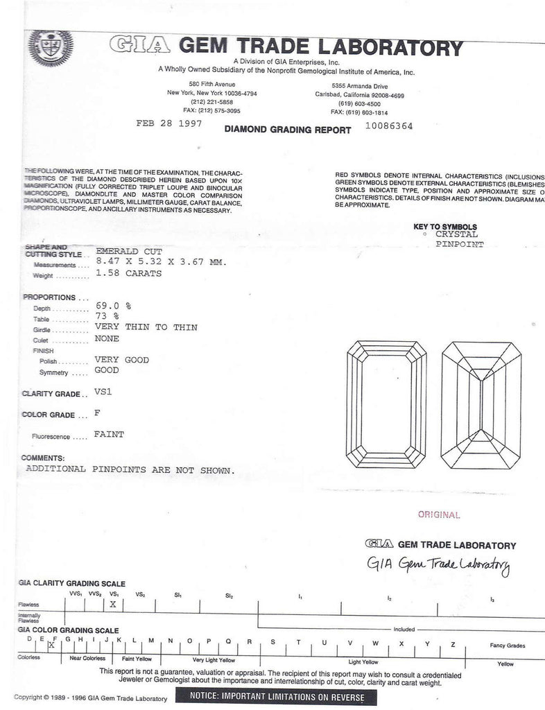 1.58 Carat FVS1 Emerald Cut Diamond GIA Certified Platinum Engagement Ring