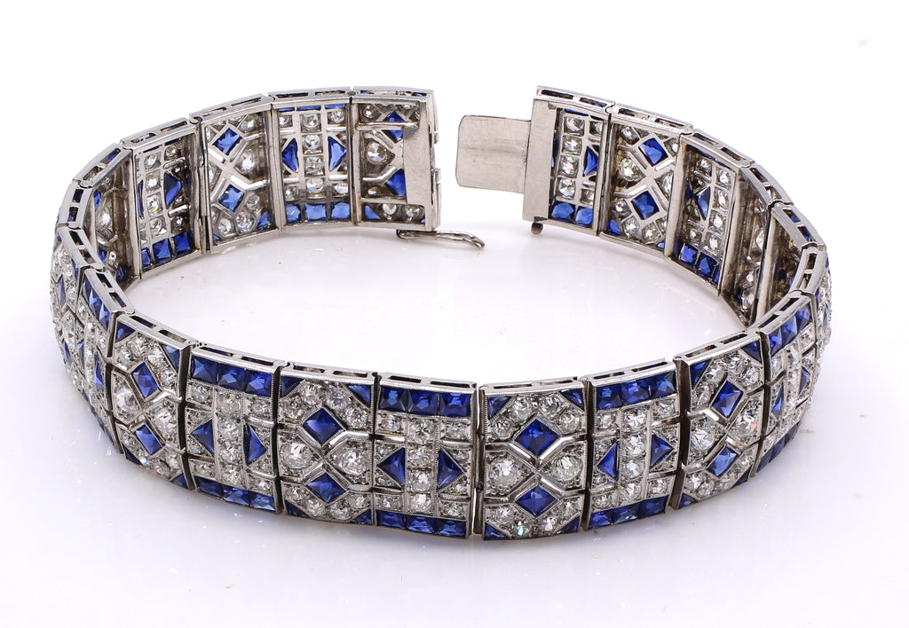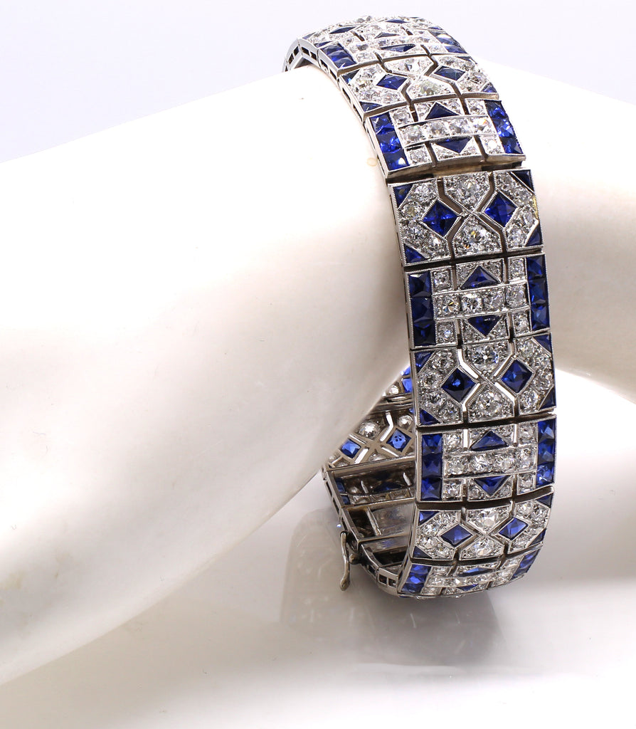 Since the beginning of the 19th century, and very much so in the 1920s and 30s, synthetic sapphires were commonly used in fine jewels. The aim was to match the colors perfectly, and since mining was much more difficult and not as sophisticated as it is today, Sapphires were relatively much less costly than synthetic ones; they even were a novelty.