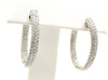 Rive Gauche JewelryBeautifully designed and masterfully handcrafted 18 karat white gold diamond hoop earrings. Perfectly matched bright white and sparkly round brilliant cut diamonds are pavé set in the front and inside of these earrings to display the beautiful fire from every visible angle. Manufactured in the perfect weight so that these hoops can be comfortably worn all day and night. The total diamond weight is 2.40 carats, as stamped on the earring, along with K18WG. Length is 1.13 inches and width from back to front is 1 inch.