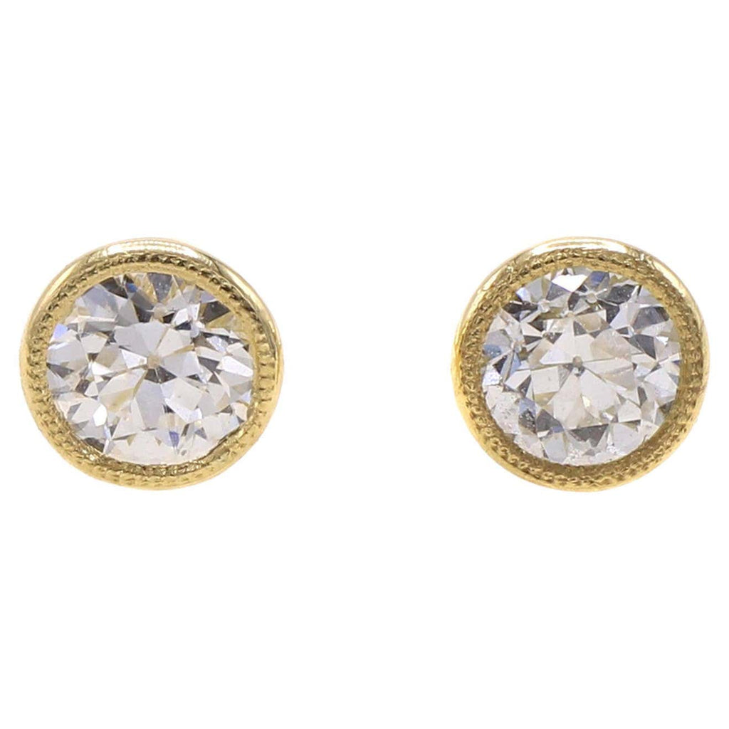 1.41 Carat D Color Old European Cut Diamond 18 Karat Gold Stud Earrings