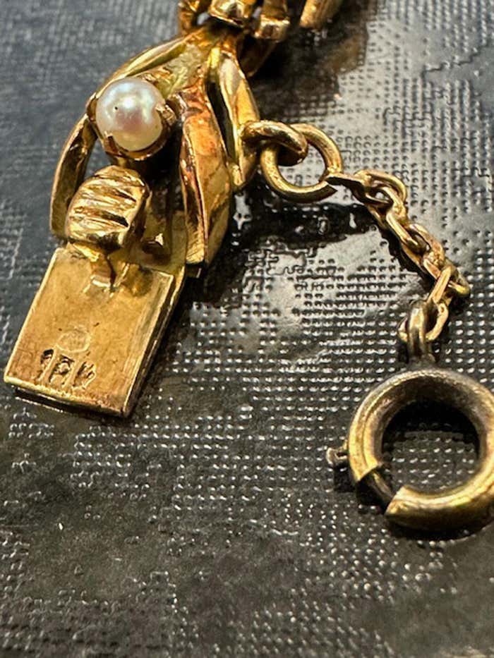 French Retro 18 Karat Yellow Gold Pearl Necklace