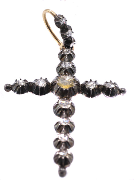 Georgian Rose Cut Diamond Silver on Gold Cross Pendant
