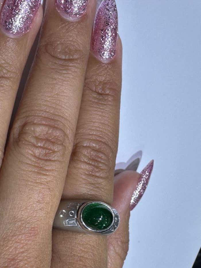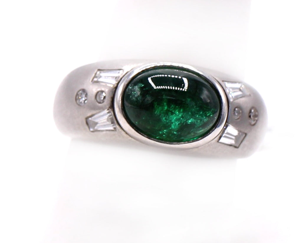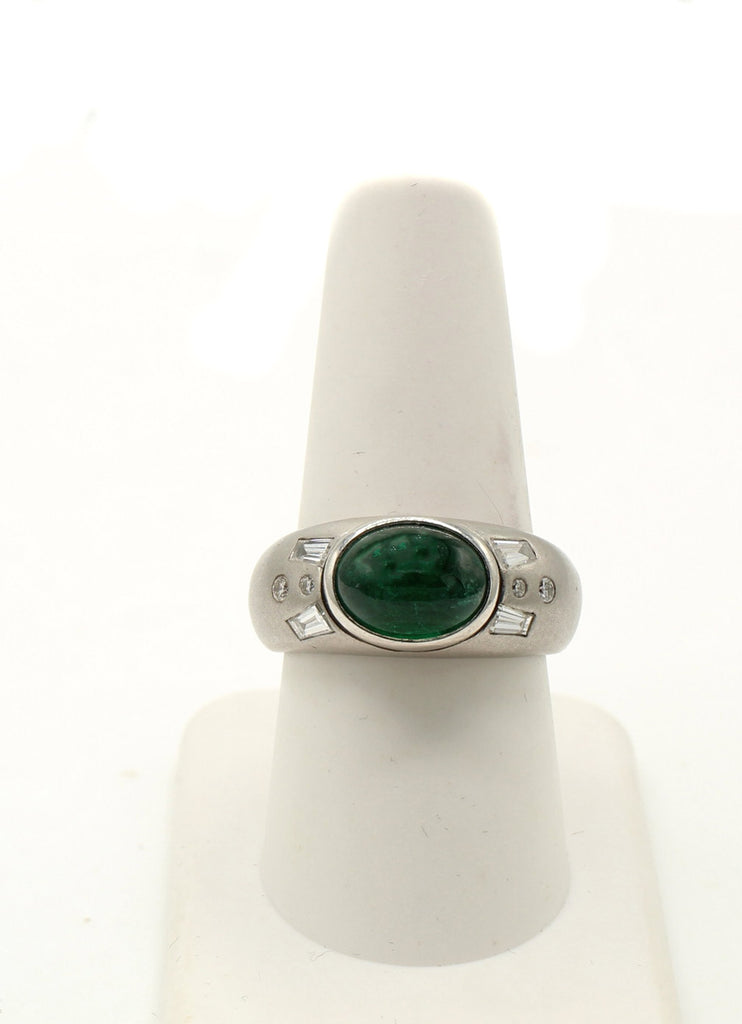 Cabochon Emerald Diamond Platinum Gypsy Ring