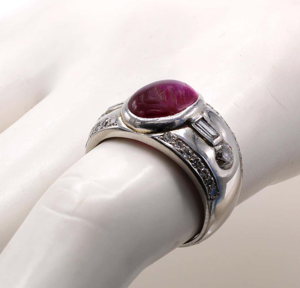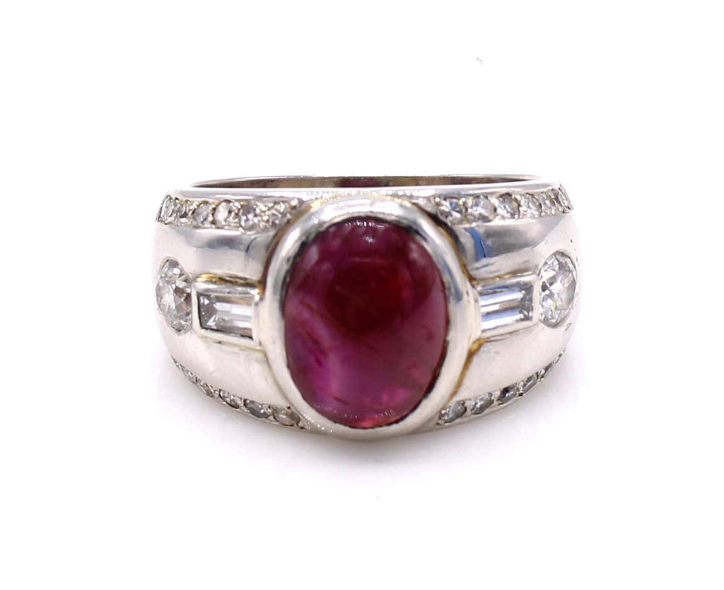 Cabochon Ruby Diamond Platinum Retro Band Ring