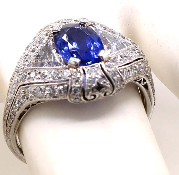 Tiffany & Co. Art Deco Burma Sapphire Diamond Platinum Ring