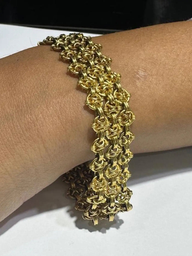 Beautifully designed and masterfully handcrafted 18 karat yellow gold flexible link bracelet. This bracelet truly feels like silk on your wrist and the movement gives it a truly chic and elegant appearance. A most wearable piece of period jewelry. Length 8.5 inches. Weighs 49.1 grams. Item Number: C543